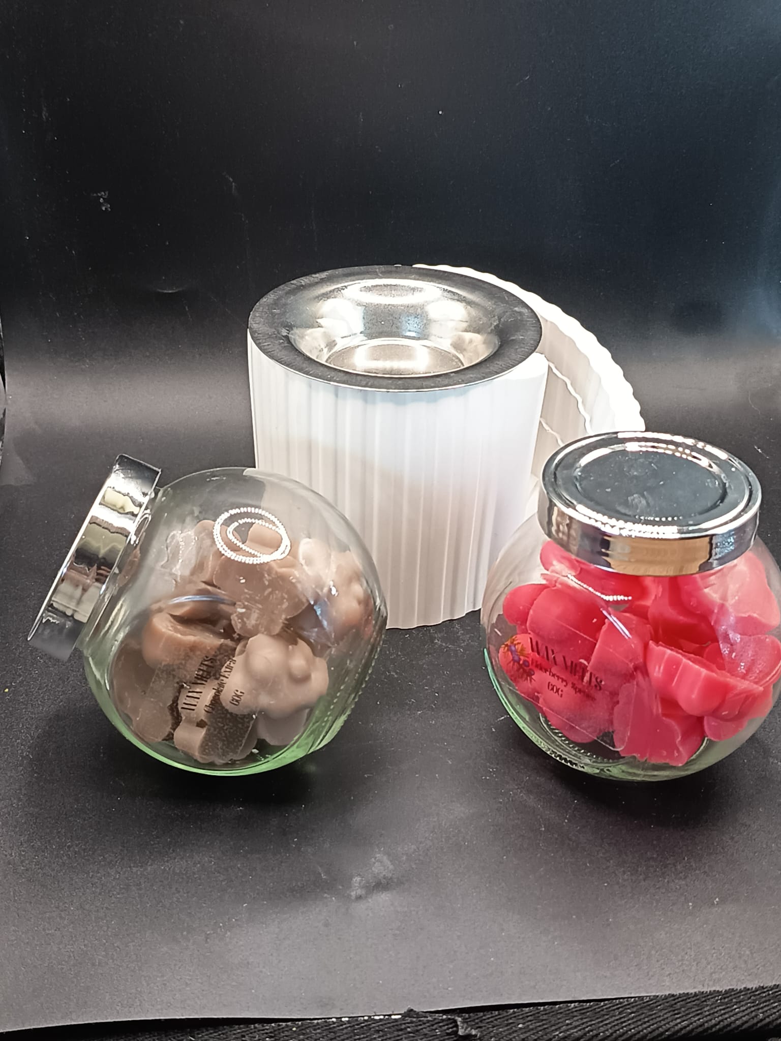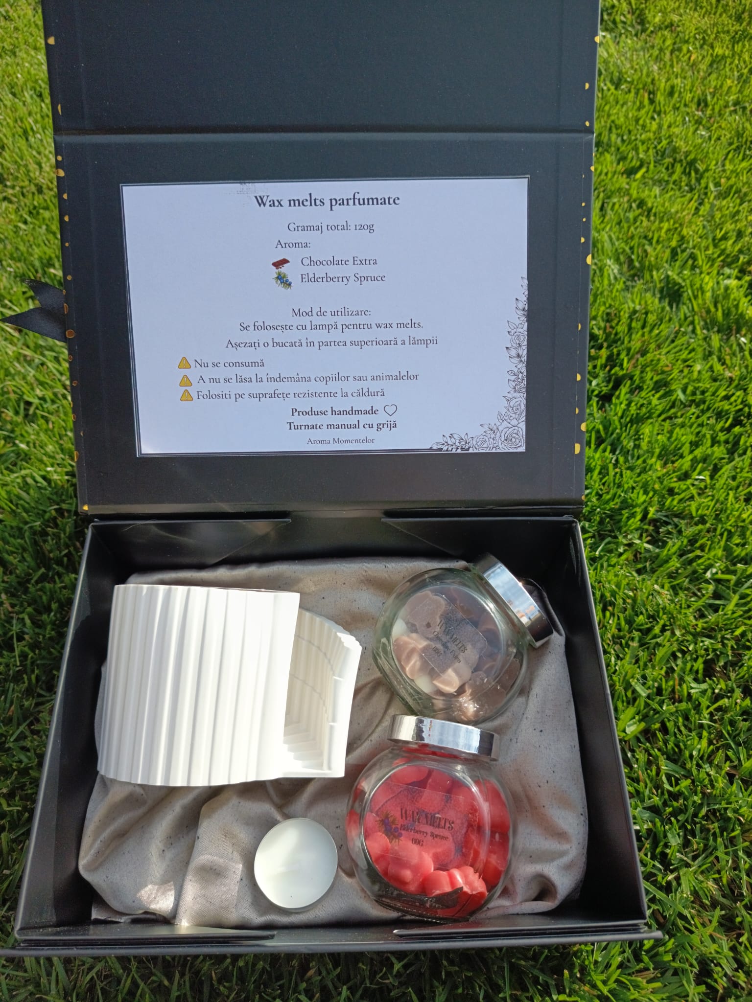 - 2 borcănașe cu ceară parfumată (wax melts) – aprox. 120g în total