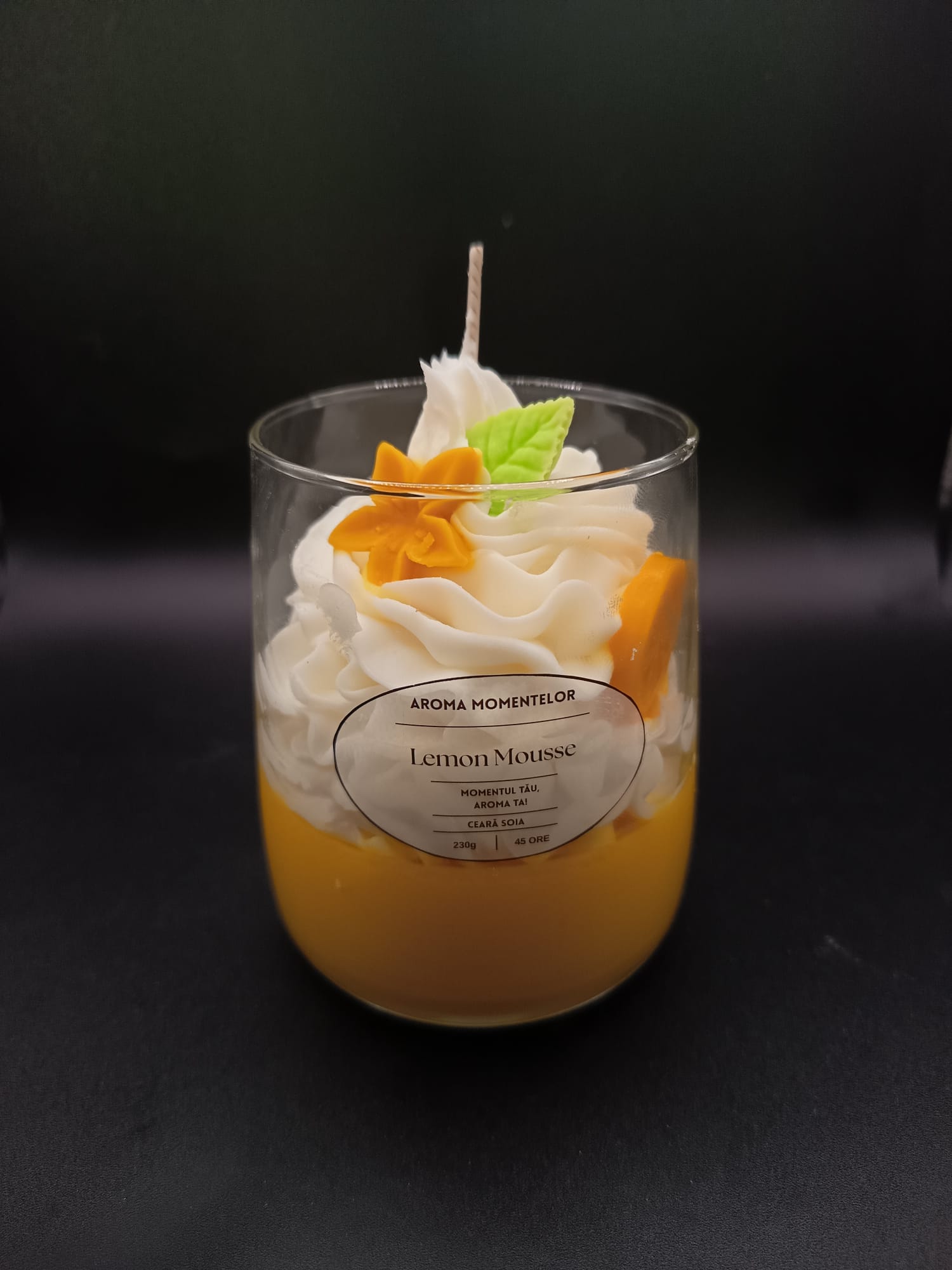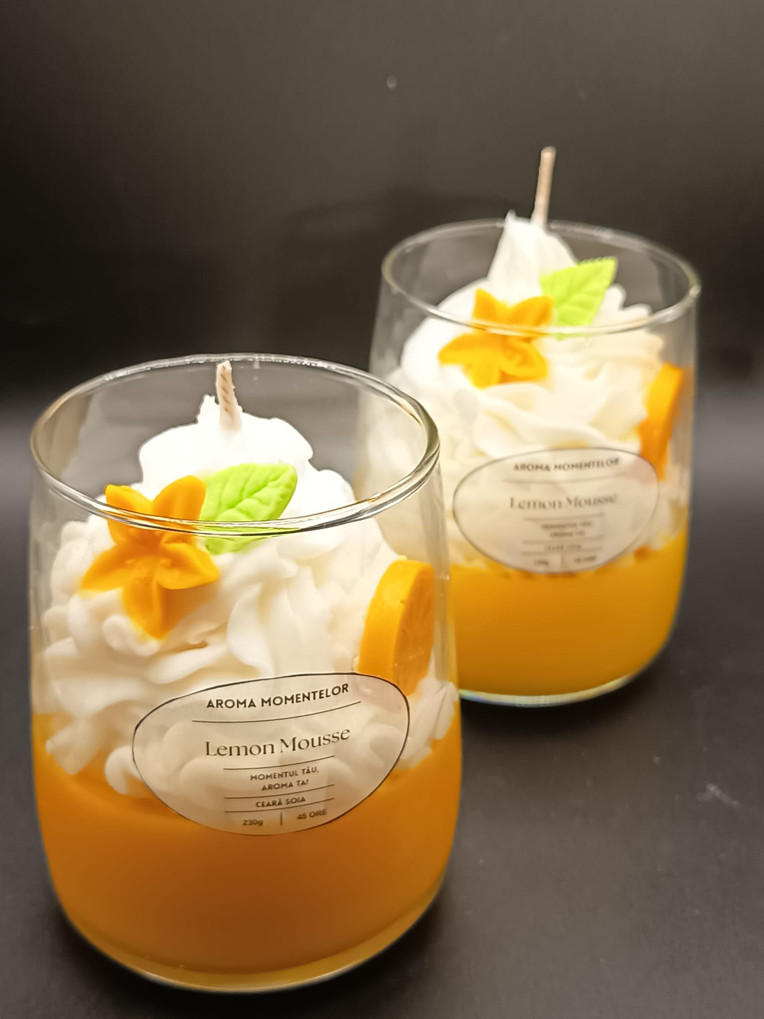 „Lemon Mousse – Răsfăț Citrinic” este o lumânare artizanală inspirată din deserturile fine cu lămâie, creată pentru a aduce prospețime și eleganță în orice spațiu. Designul său realist, în straturi, imită perfect un mousse cremos de lămâie, decorat cu detalii delicate ce oferă un aspect premium și irezistibil.